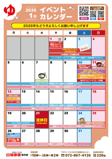 ●暴力団、並びにその関係者とみなされる方、刺青、タトゥー(シール含む)、泥酔の方はご入館を固くお断りします。 ●館内への飲食物のお持ち込みはご遠慮ください。 |